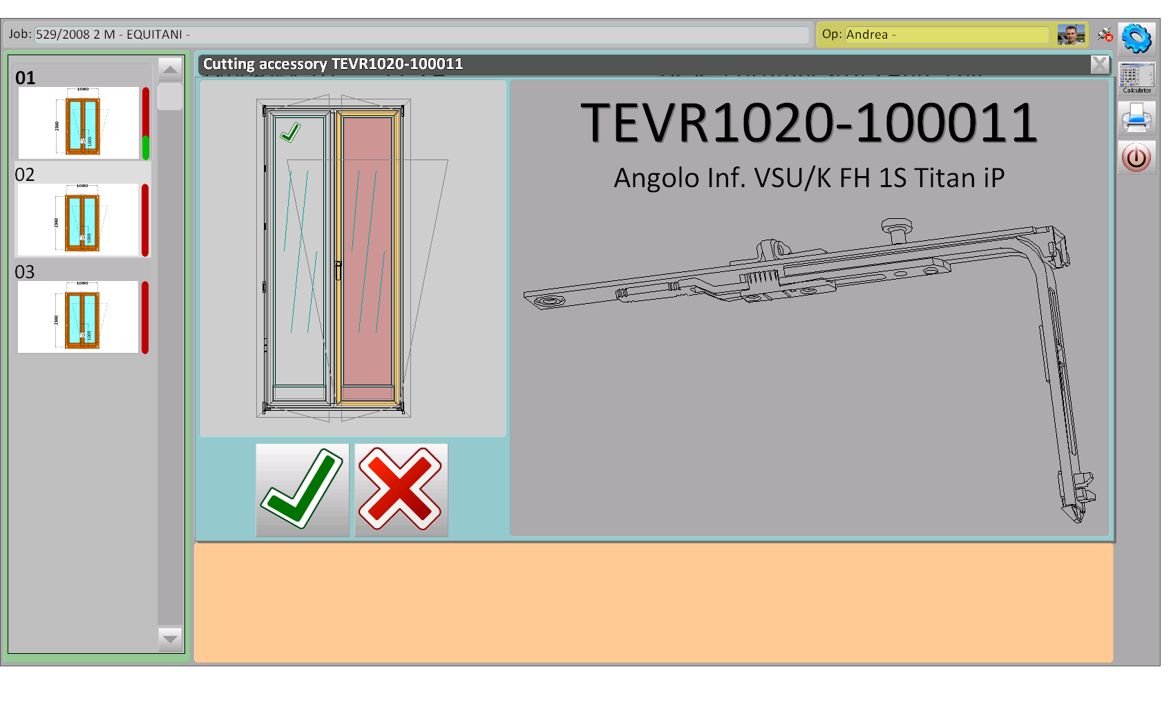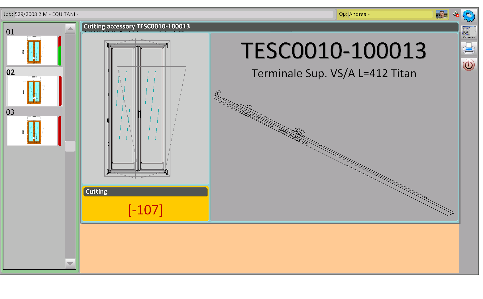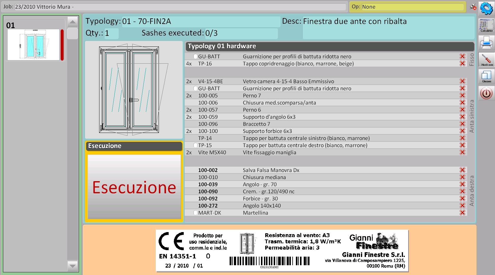 Moguće je vizualizirati u različitim dijelovima okvira potreban pribor, gdje je prikazana strana stijene koja se izrađuje. Također vam omogućuje da vidite ispune koje će biti instalirane na stijenu, pokazujući šifru za instalaciju uz opis i dimenzije.